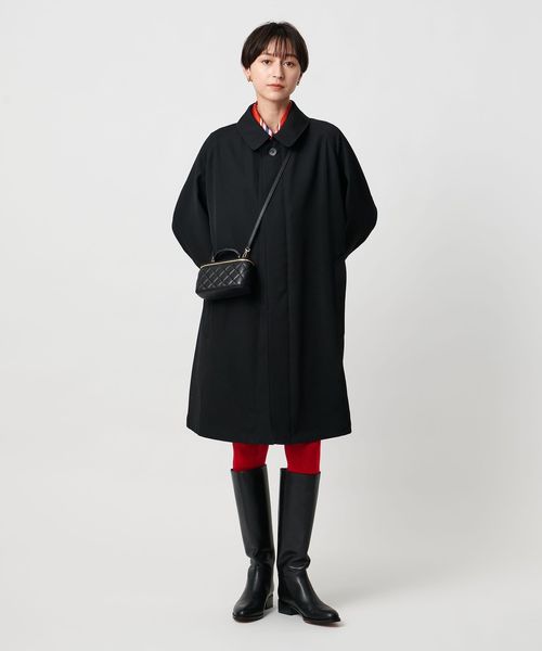Aラインのコートにカラータイツを合わせたスタイルが新鮮。