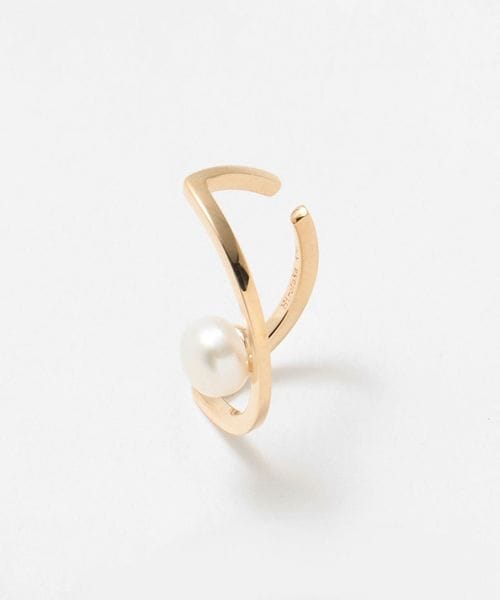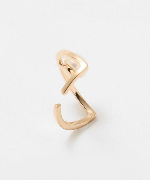 構築的なラインに施した淡水パールが目を惹くイヤーカフ。