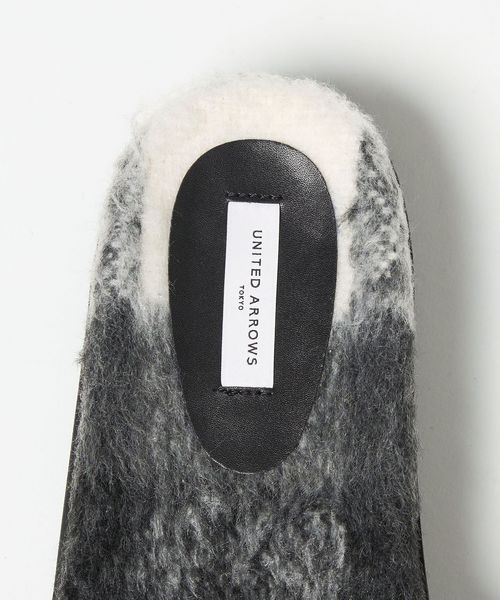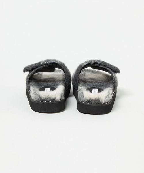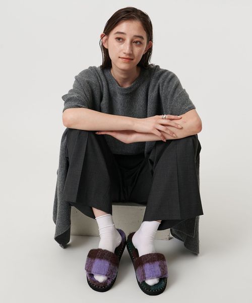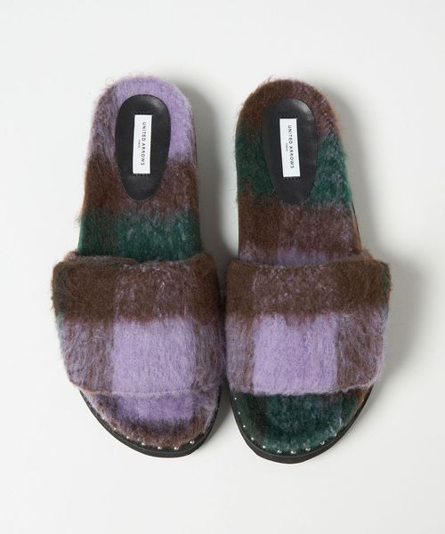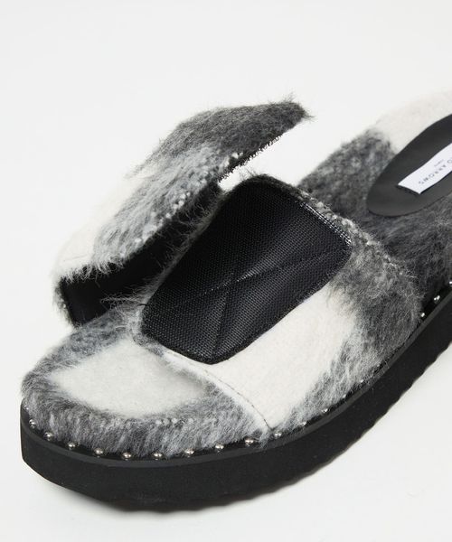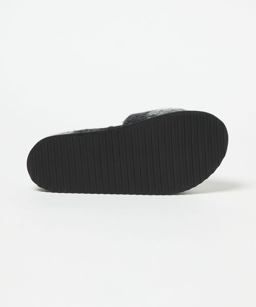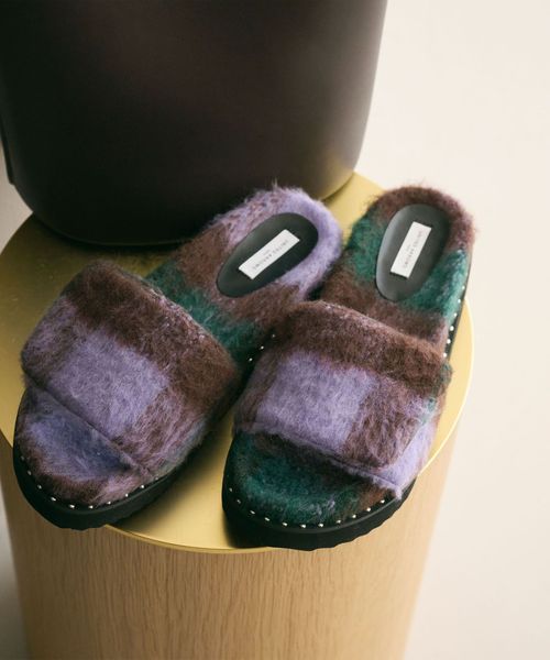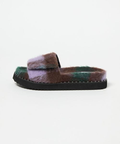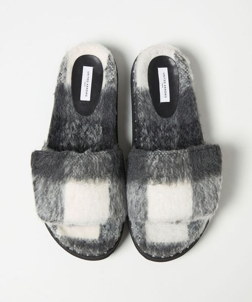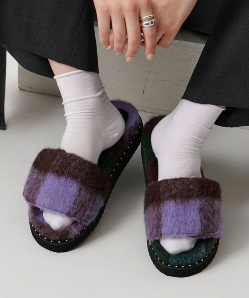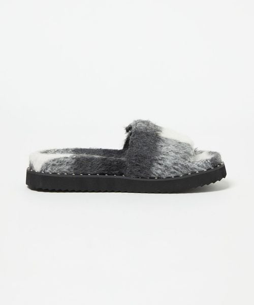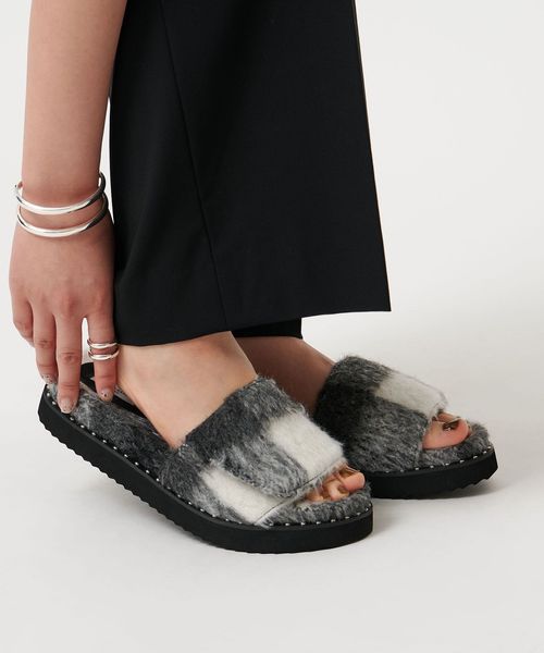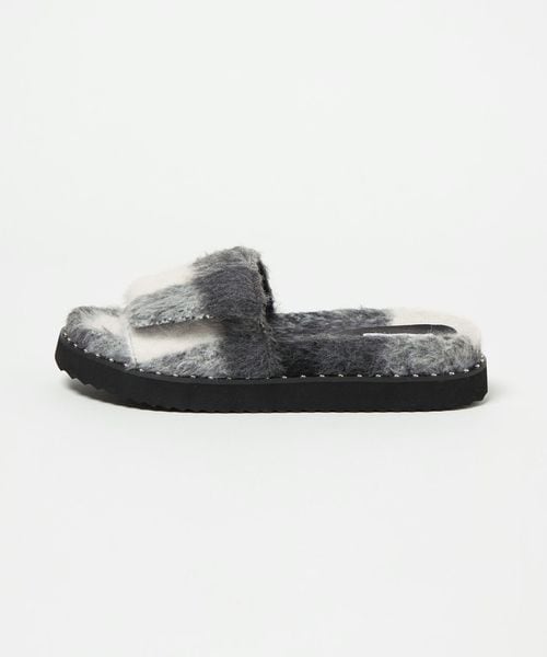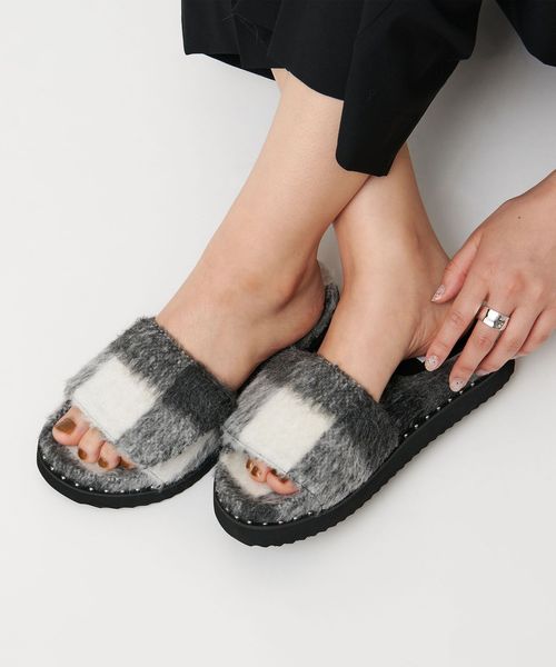 毛足の長い起毛素材がシーズナブルなチェック柄サンダル