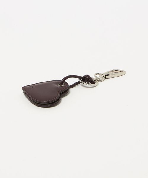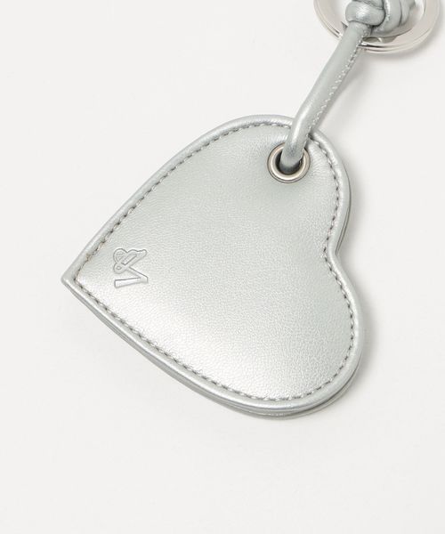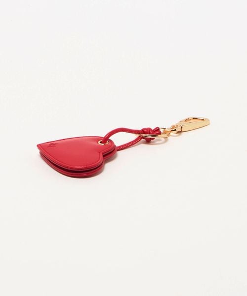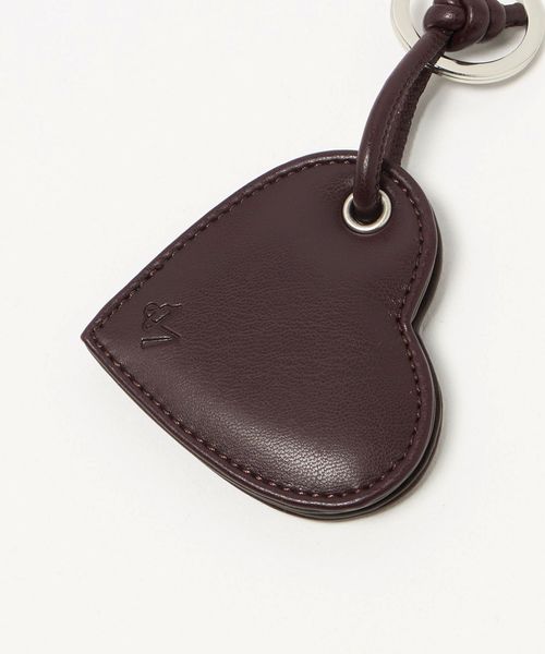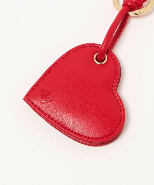 縁側にステッチを施したハートシェイプのミラー付きチャーム。