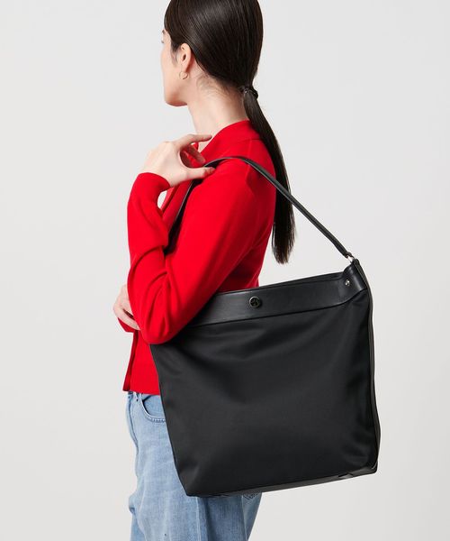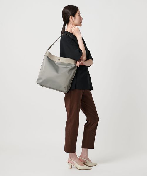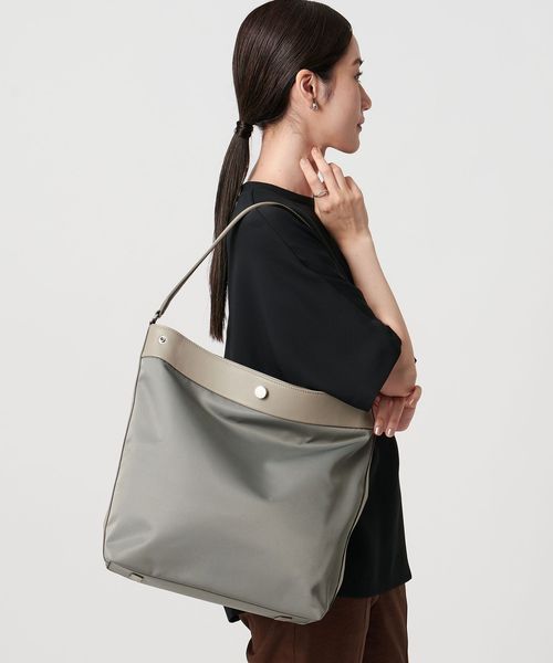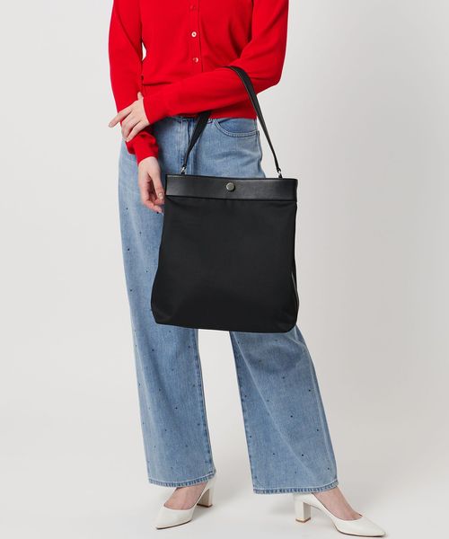 バッグの両脇に付いたスナップを留めることで、フォルムを変えて楽しめる2WAY仕様です。