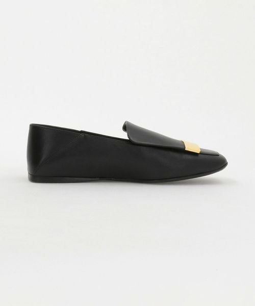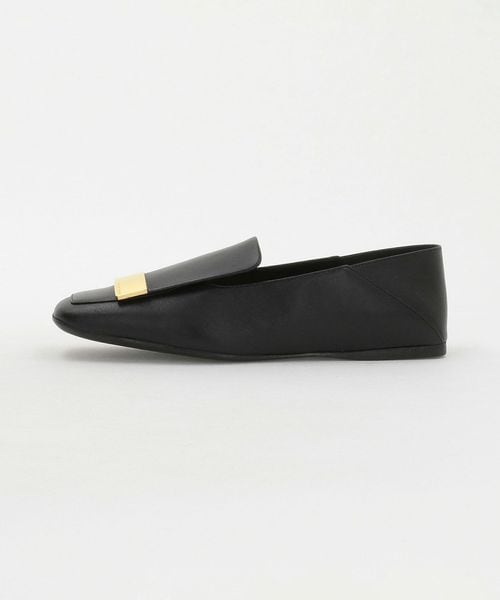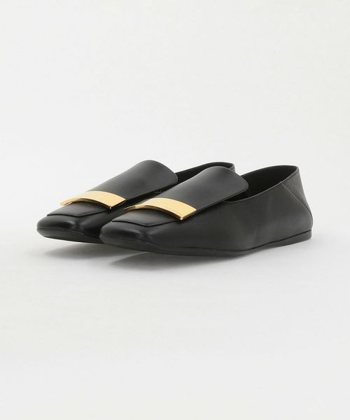 ゴールドカラーのメタルプレートが特別感を演出するフラットシューズ