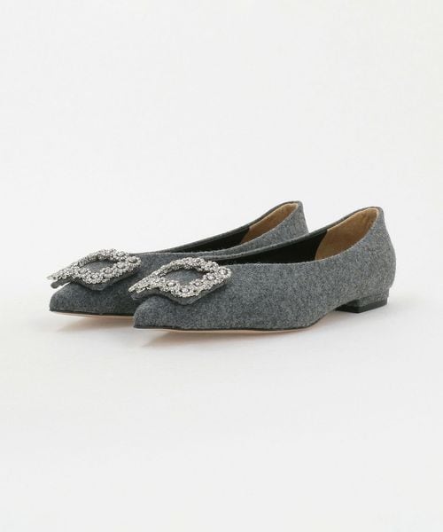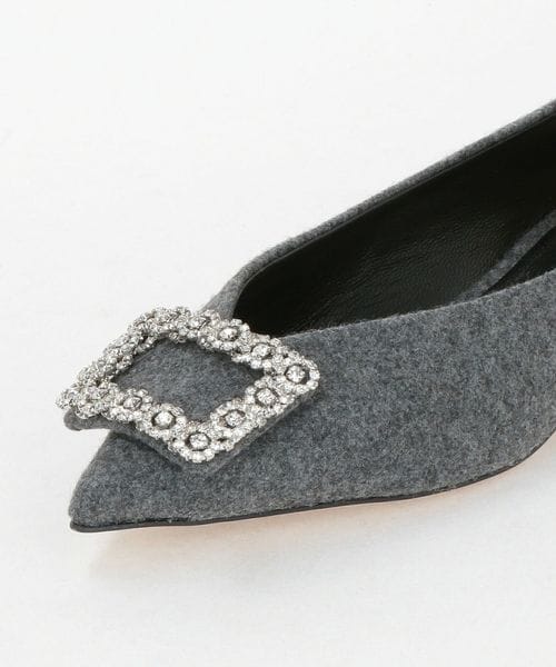 ビジューパーツがラグジュアリーな雰囲気のフラットパンプス