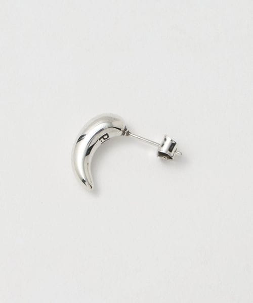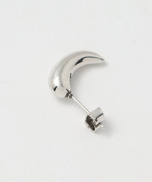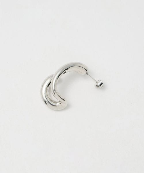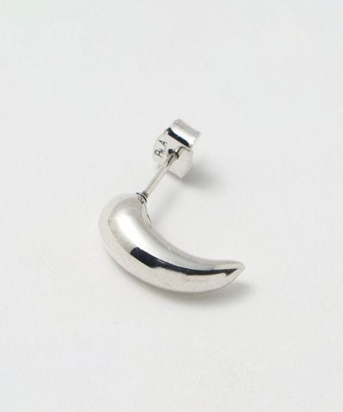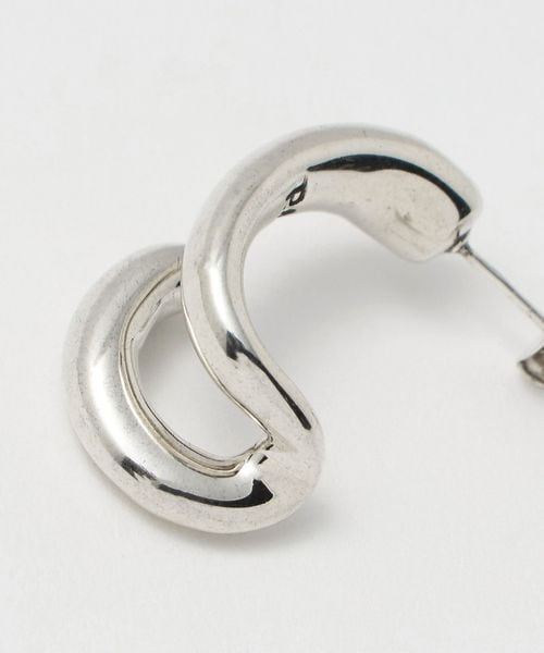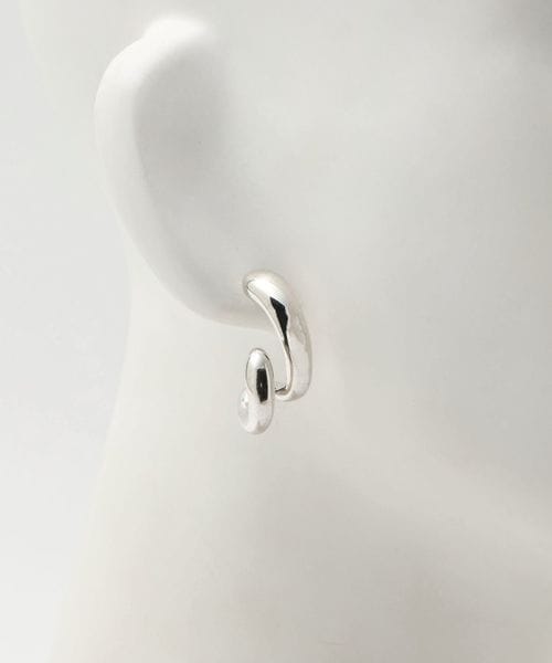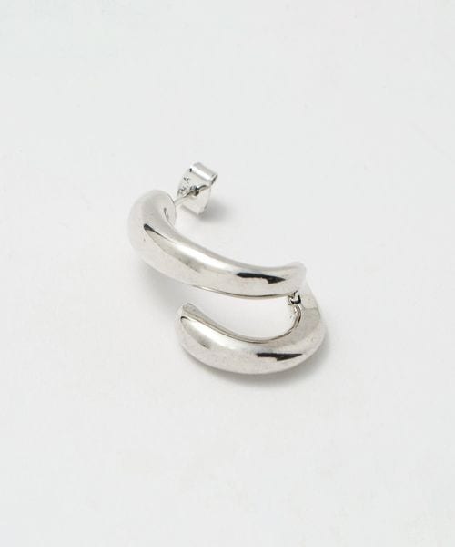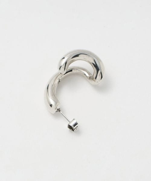宙に浮いているような立体的なシルエットとシンプルなカーブピアスのアシンメトリーなデザイン。