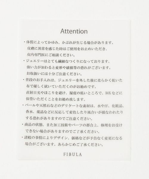 ブランド名の「FIBULA」は、古代ギリシャローマ帝国で衣服を留める時のブローチの意味。