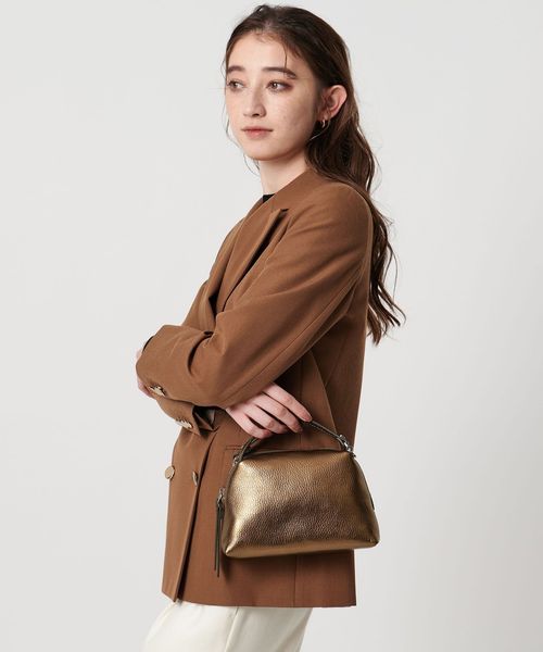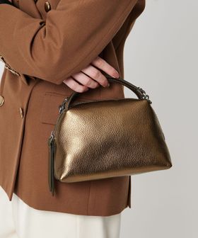 メタリックカラーが華やかさをプラスしつつもコーディネートに馴染みやすいのが魅力的。