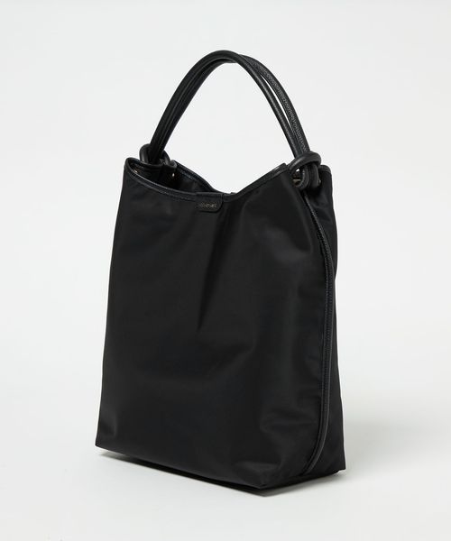 スマートに持ち運べるたて型のトートバッグは通勤にもぴったり。