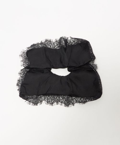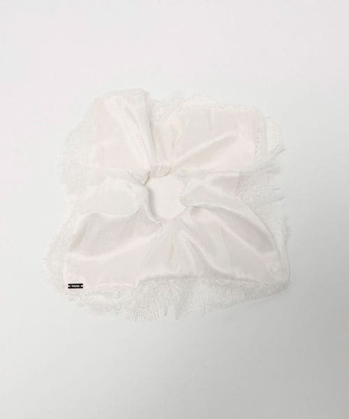 繊細なレースを縁取りに施したエレガントなシュシュ。