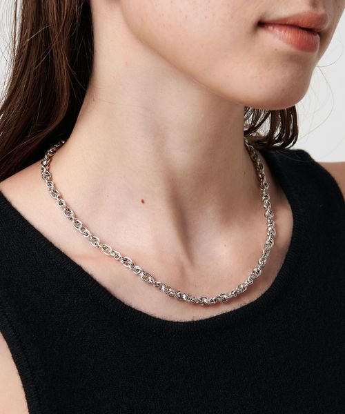 巧みにつなぎ合わせたチェーンが印象的なネックレス