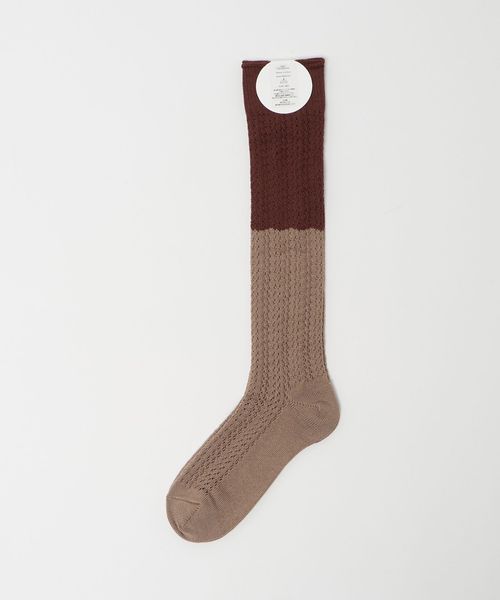 シグネチャーモデルのレース編みロングソックスを配色にしたUNITED ARROWS別注デザイン。