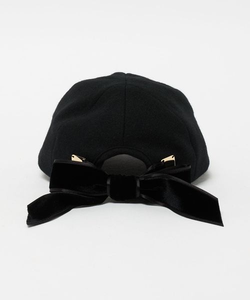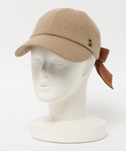 毛混紡の温かみのある素材とベルベット調のリボンを組み合わせた人気のキャップ。