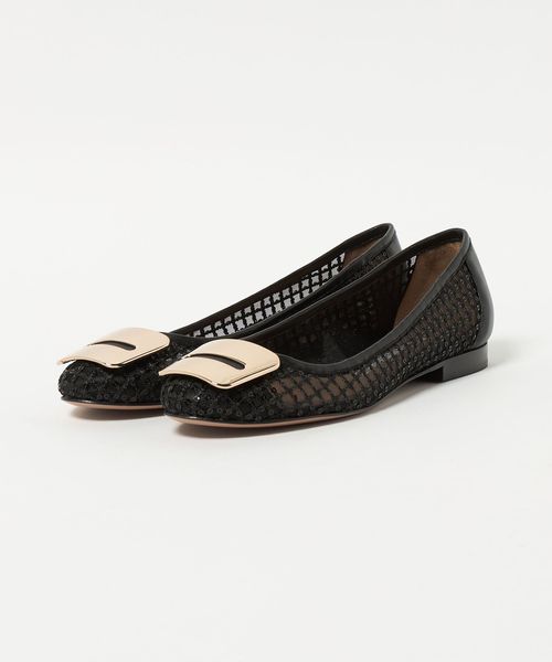 ゴールドカラーのプレートがクラシカルな雰囲気漂うメッシュのフラットシューズ