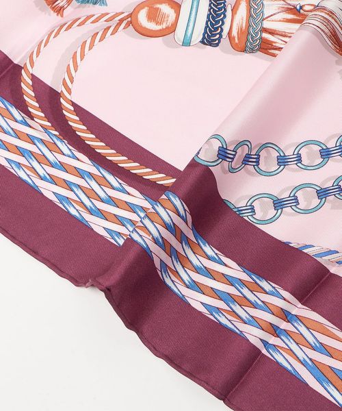 首元や頭に巻くのにちょうどよいサイズと、華やかでエレガントな絵柄が魅力です。