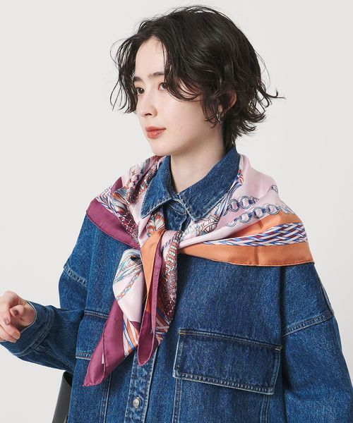色鮮やかなプリントがコーディネートを彩るシルクのスカーフ