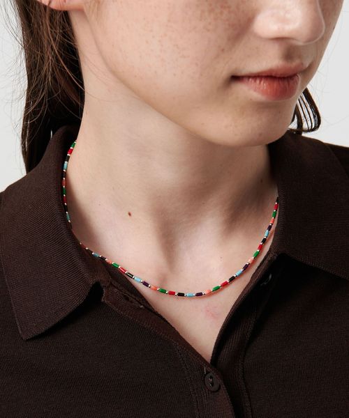カットソーやブラウスなどシンプルなスタイルにさりげなく華やかさを添える一品です。