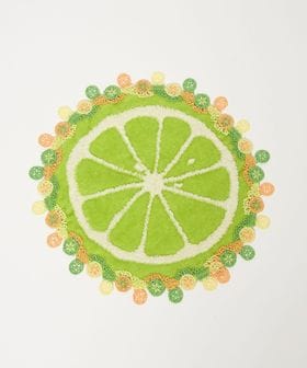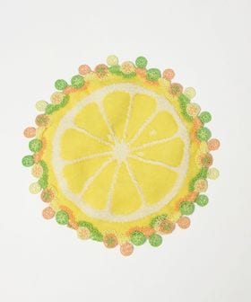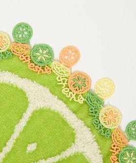 フレッシュなフルーツの断面をジャガード織りで描いたサークル型のハンカチ。