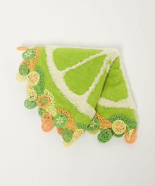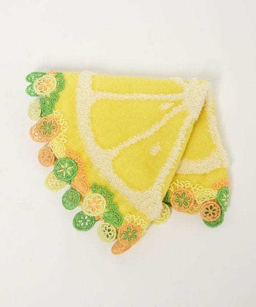 フレッシュなフルーツの断面をジャガード織りで描いたサークル型のハンカチ。