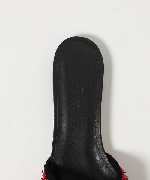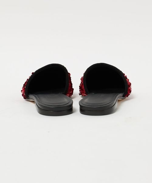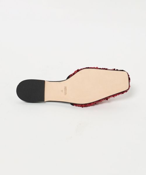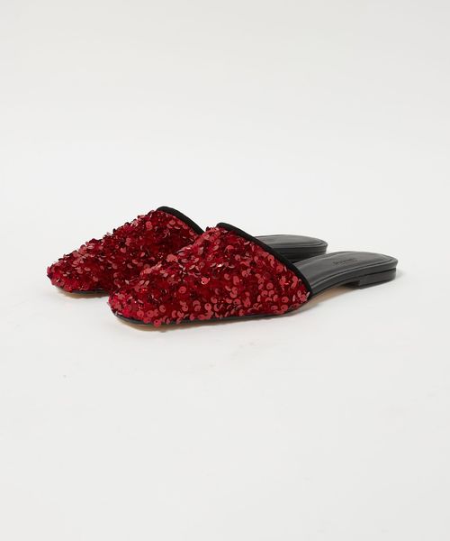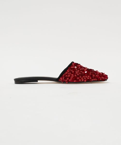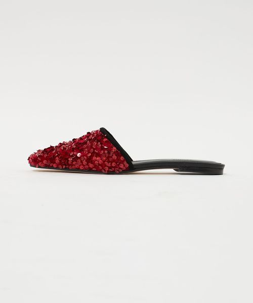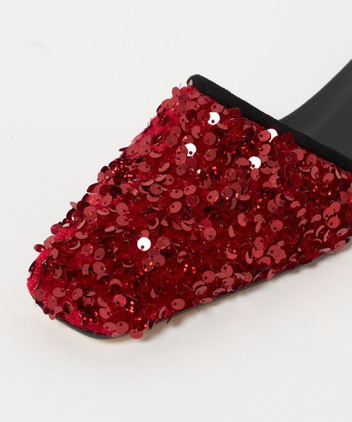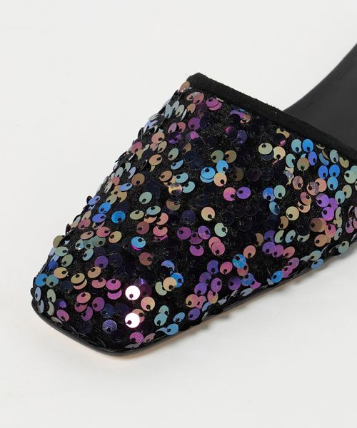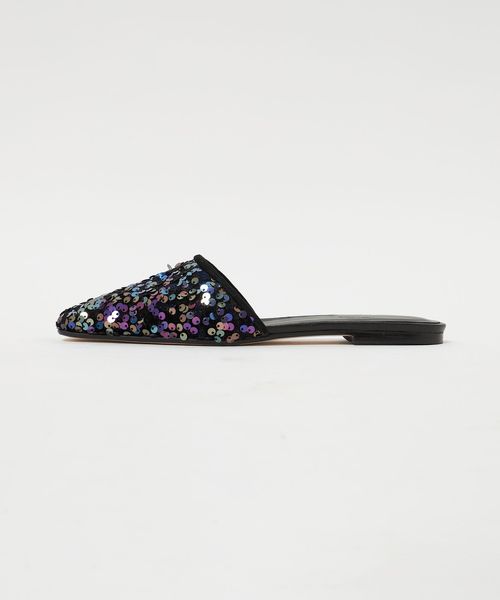 スパンコールの輝きがリュクスなムードを演出するミュールサンダル。