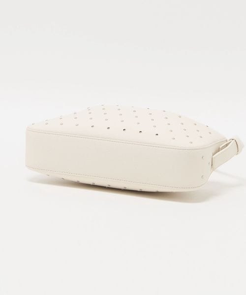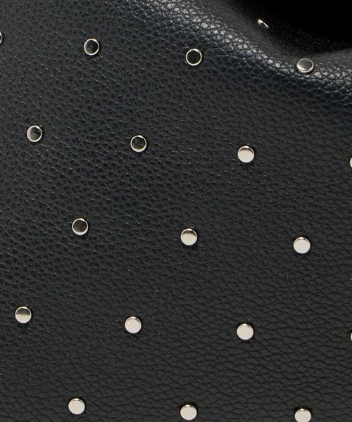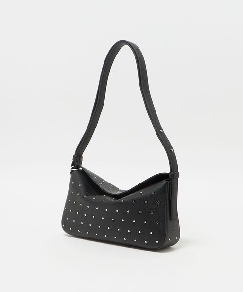 スタッズを全面にあしらったミニマルなデザインのショルダーバッグ