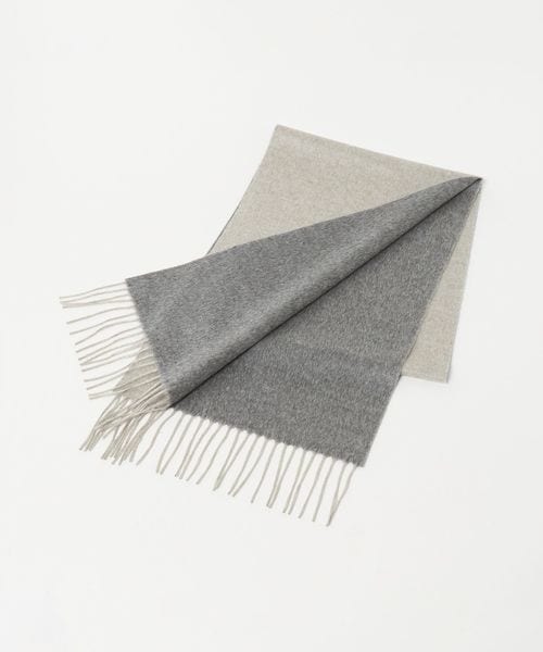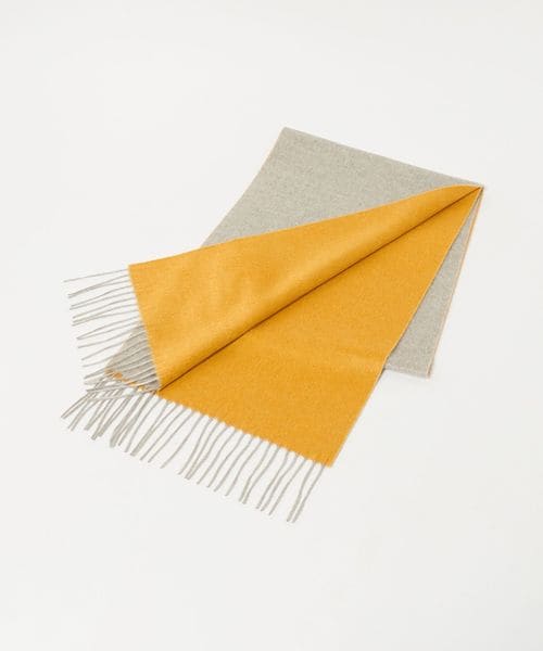 カシミヤの温もりとシルクの微光沢を兼ね備えた、上質な素材のリバーシブルマフラー。