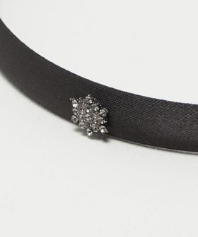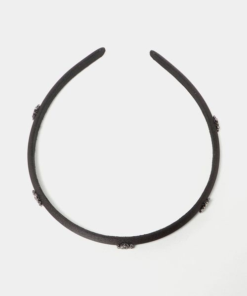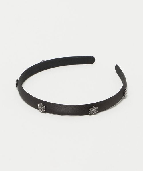 サテン素材にパヴェパーツを配したヘッドバンド。