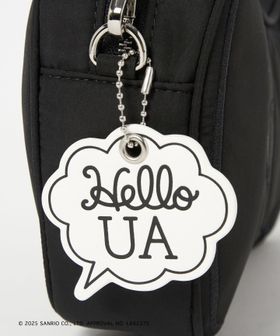 ハローキティとUNITED ARROWSのコラボレーションのためにデザインした「Hello UA」吹き出しモチーフのチャームがついています。