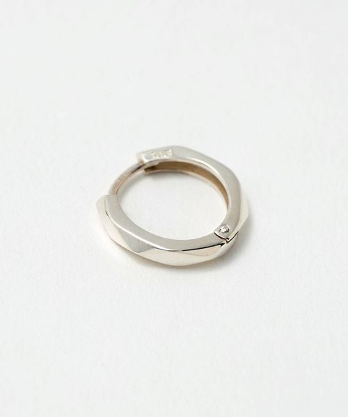 多方向に施されたカッティングが光に角度によって表情を変えるフープピアス。