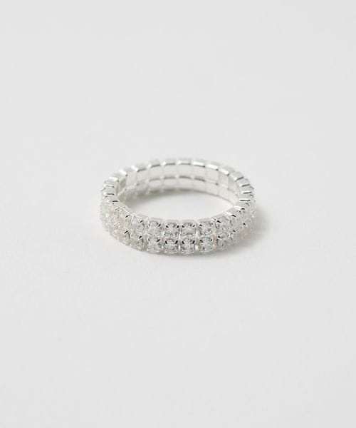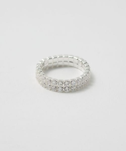 シルバーの土台にジルコニアを2段並べた、指先に立体感と華やかさを演出するリング。