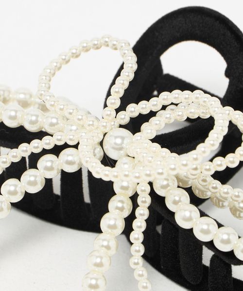 クラシカルなリボンをイミテーションパールで表現したフェミニンなクリップ