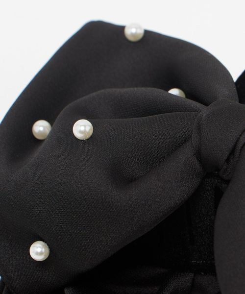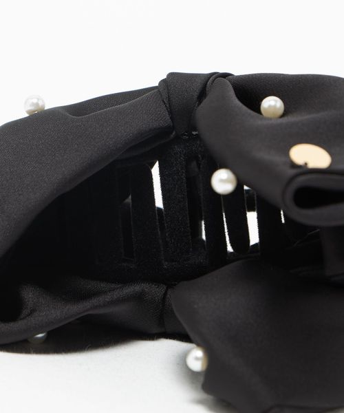 艶やかなサテンリボンに、小粒のイミテーションパールを散りばめたクリップ