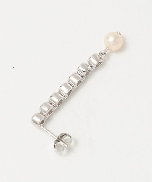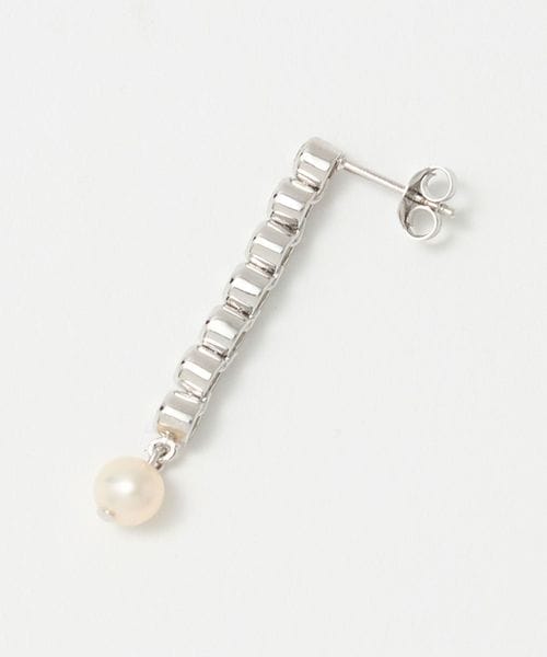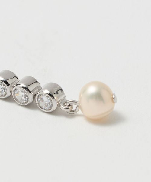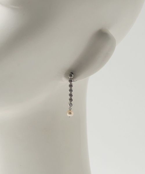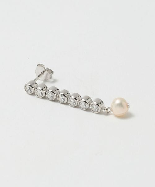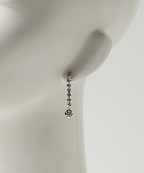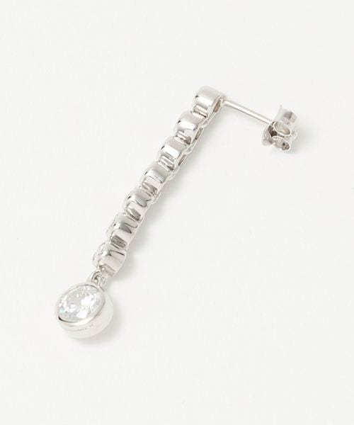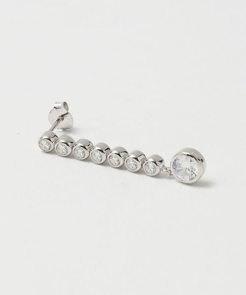 7粒のキュービックジルコニアの先端を左右アシンメトリーにデザインした繊細で美しいピアス。