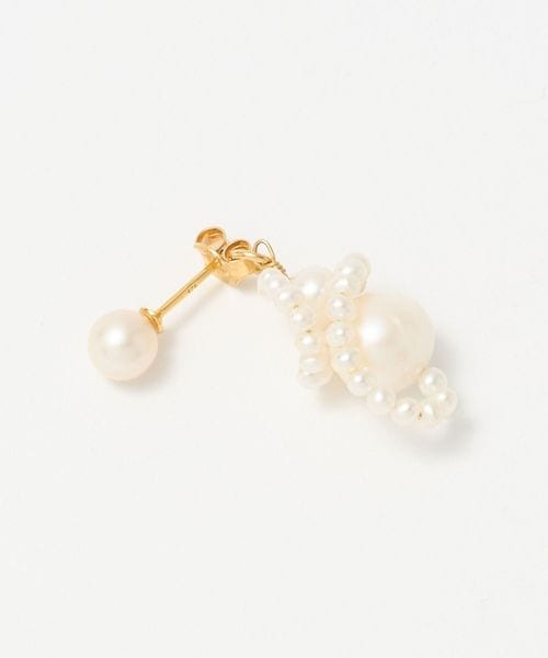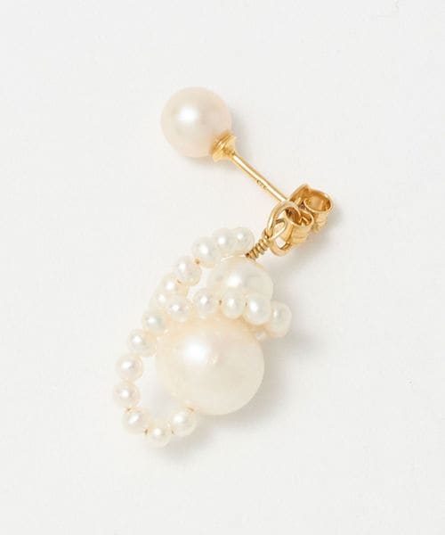 大きさの異なる淡水パールを巧みに組み合わせた、繊細なデザインが魅力のピアス
