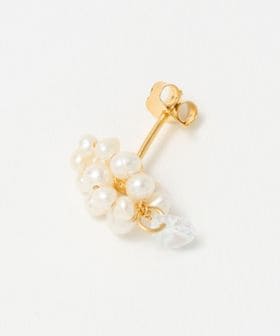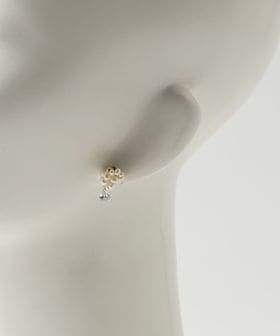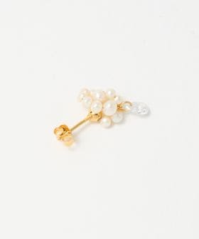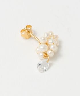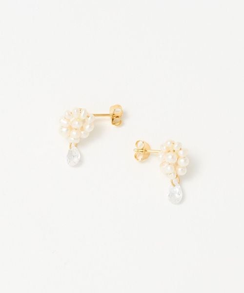 小ぶりな淡水パールを立体的に配置して、先端にドロップ型のキュービックジルコニアをあしらったピアス。