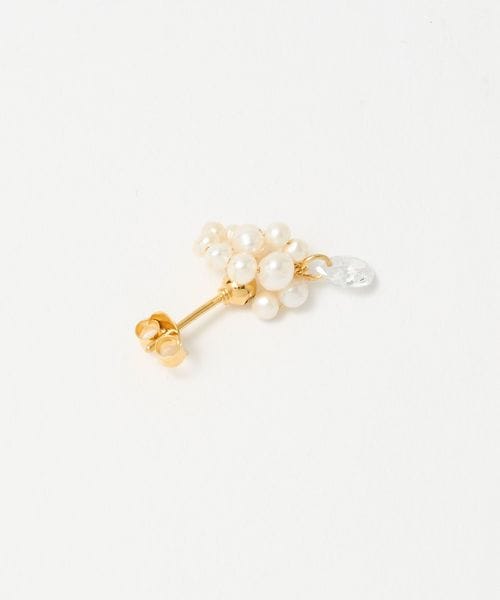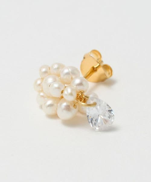 小ぶりな淡水パールを立体的に配置して、先端にドロップ型のキュービックジルコニアをあしらったピアス。