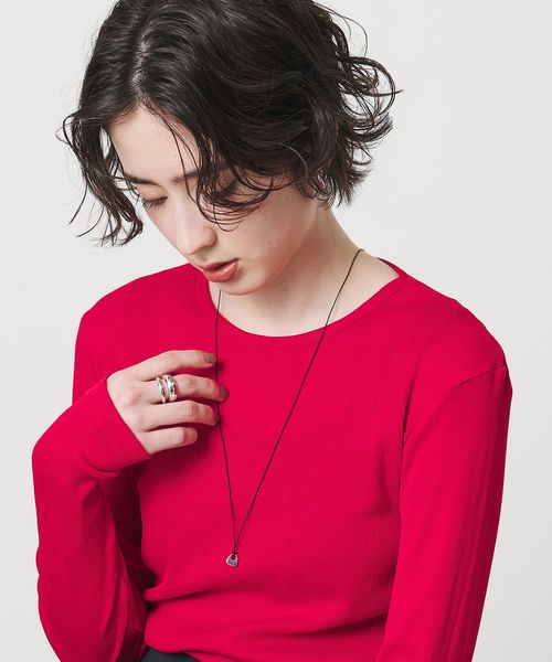 つややかなシルバーカラーのトップはモノトーンカラーのトップスなどに映えます。