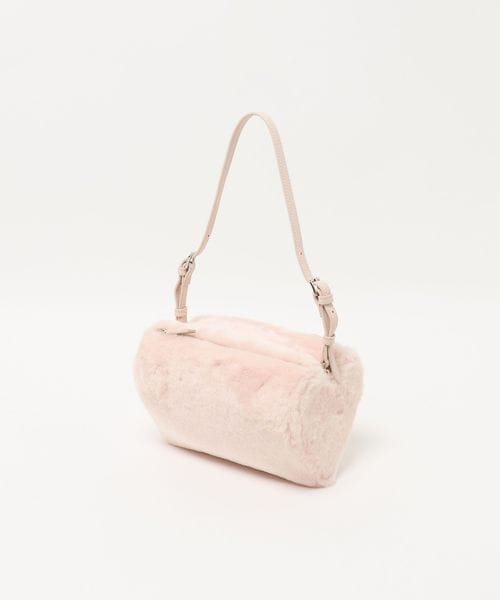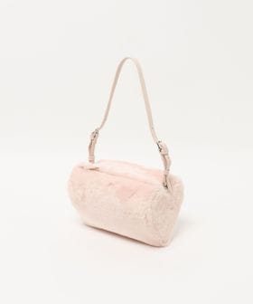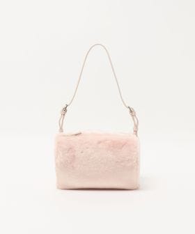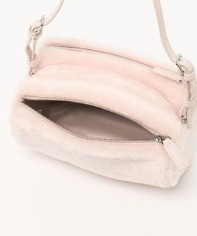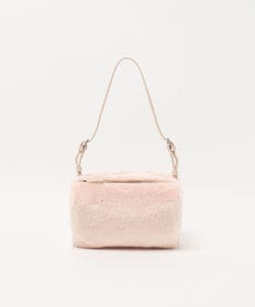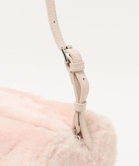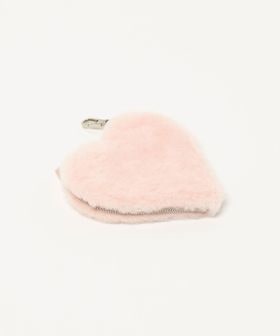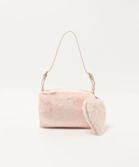 ハート型のバッグにのせたベビーピンクのフェイクファーがフェミニンな印象。