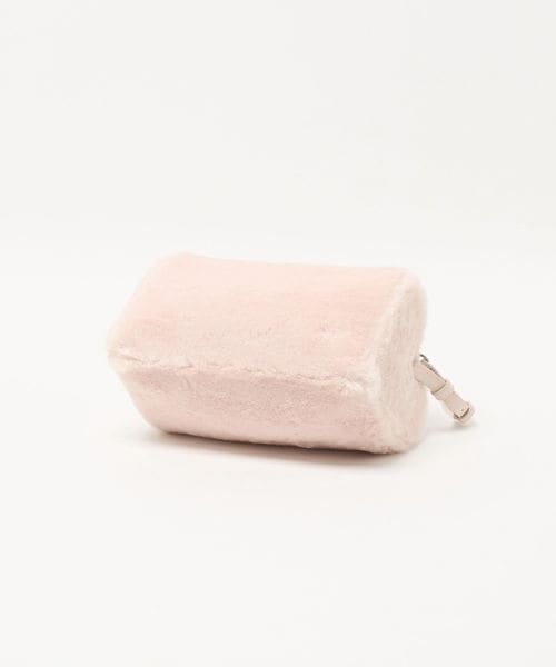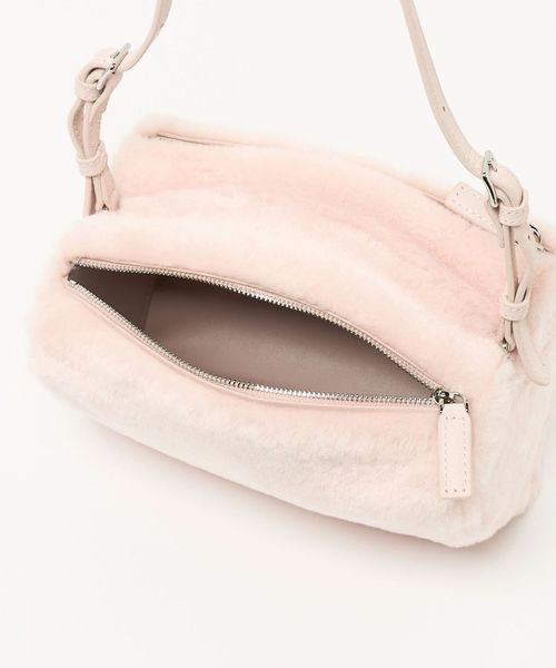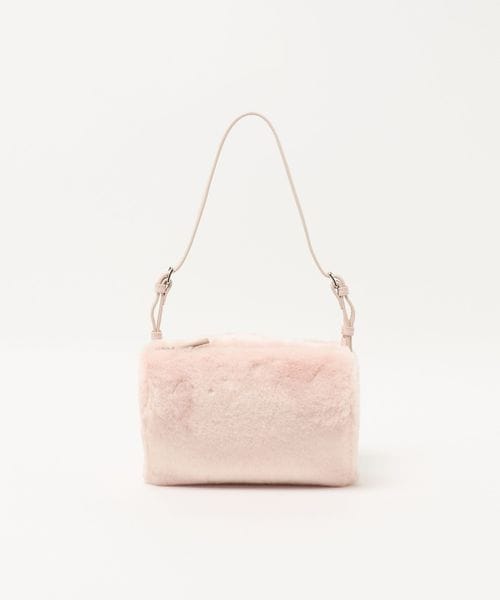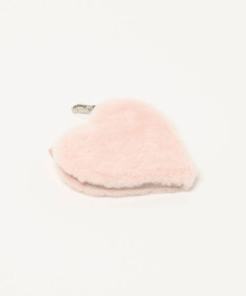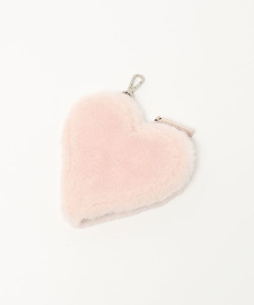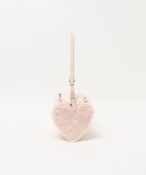 ハート型のバッグにのせたベビーピンクのフェイクファーがフェミニンな印象。