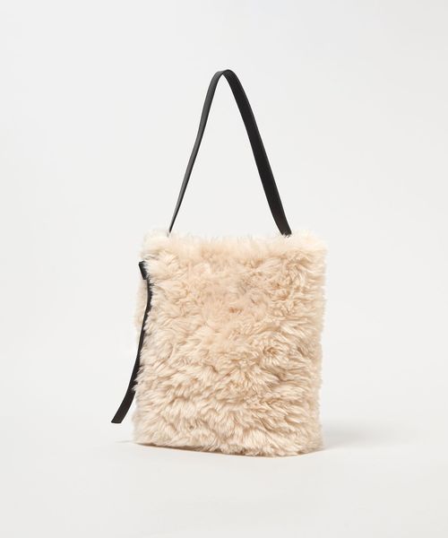 ランダムな毛足とふっくらとしたボリュームが目を惹く、フェイクボア素材のワンハンドルバッグ