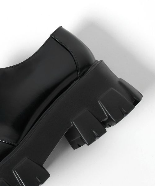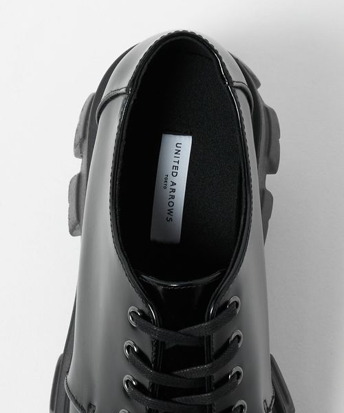 メンズテイストのレースアップデザインを、艶のある天然皮革と厚底ソールでモードに仕上げました。