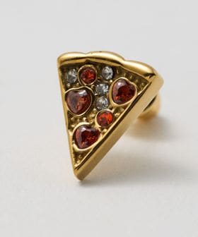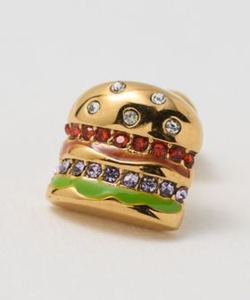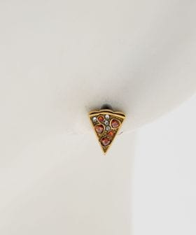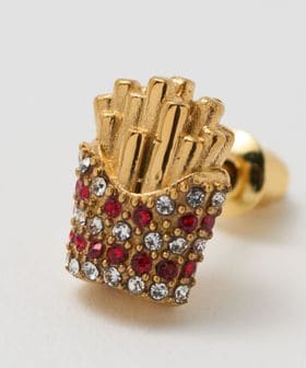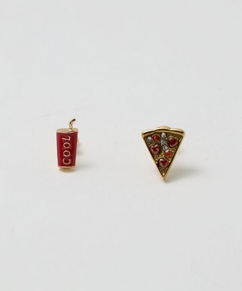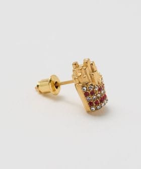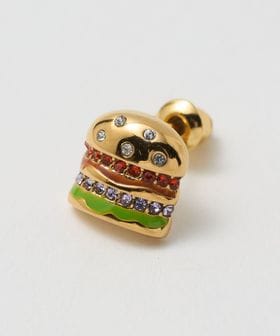 ピザやハンバーカー、ポテトなどをキラキラなビジューとメタルで象った手の込んだピアス。