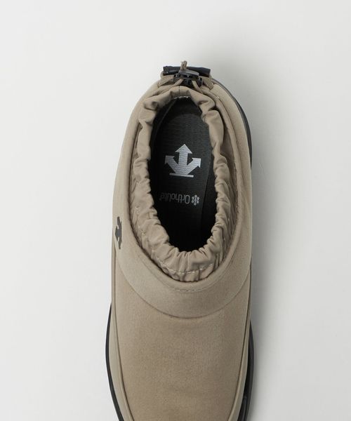 シューズ内側の肌に接する面にデサント社独自の蓄熱保温素材「HEAT NAVI」を、インソール表面には蓄熱素材の「ベルセラ」を使用し防寒性を向上させています。