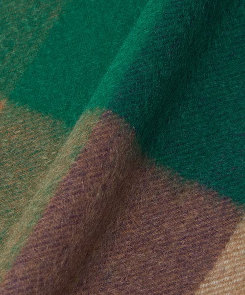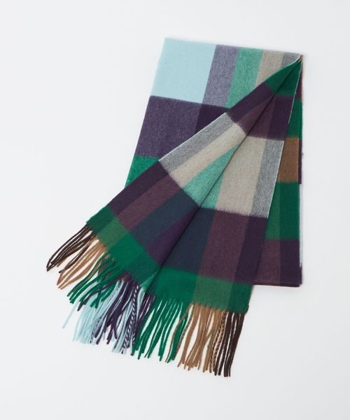 首元にさらりと巻くのはもちろん、肩から羽織ると印象的な色彩が引き立ちます。