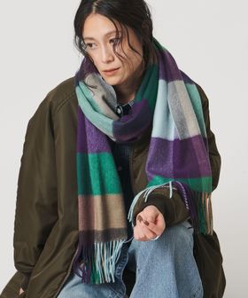首元にさらりと巻くのはもちろん、肩から羽織ると印象的な色彩が引き立ちます。