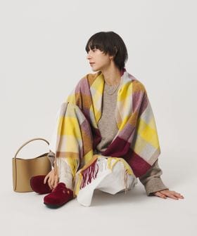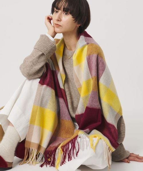 首元にさらりと巻くのはもちろん、肩から羽織ると印象的な色彩が引き立ちます。