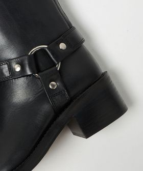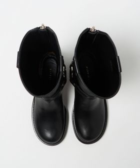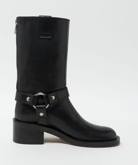 ベルテッド仕様のエンジニアブーツ調のデザインを取り入れたミドル丈ブーツ