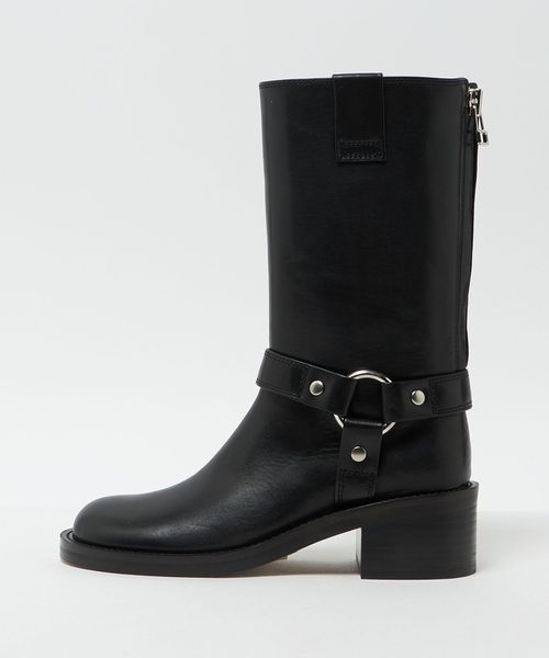 ベルテッド仕様のエンジニアブーツ調のデザインを取り入れたミドル丈ブーツ