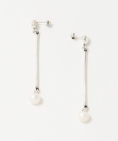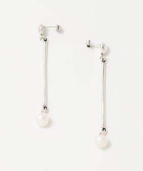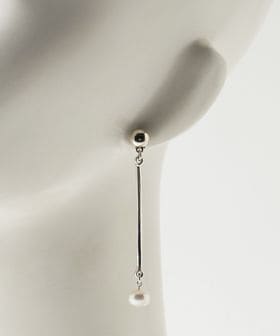 バー状のパーツにイミテーションパールをセットしたロングピアス