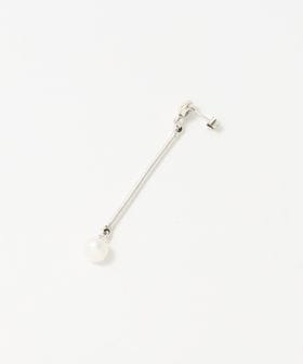 直線的なバーと楕円のパール調パーツの相反する形状を、<PHILIPPE AUDIBERT>らしい感性でロングピアスに。