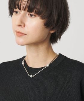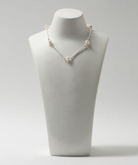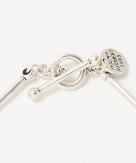 直線的なバーと楕円のパール調パーツの相反する形状を、<PHILIPPE AUDIBERT>らしい感性でネックレスにした個性的な一品。