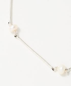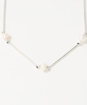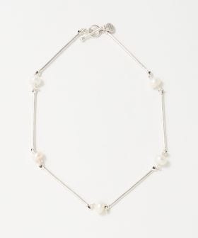バー状のパーツとイミテーションパールを交互に配したネックレス